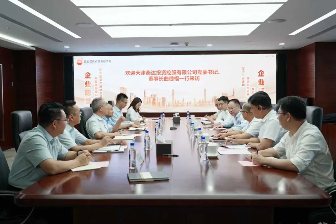 8月28日,天津泰达投资控股有限公司(简称“天津泰达控股”)党委文书、董事长曲德福带队看望昆仑相信,两边围绕深刻多领域相助进行了漫谈琢磨。公司董事长、党委文书王峥嵘,总司理、党委副文书江昱洁出席。